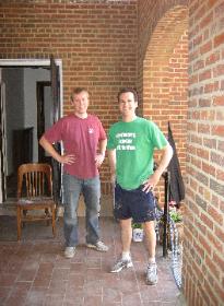 Terry and Don (our ND leader) after a hard day's work. Hey Don, isn't that paint suppose to be on the wall instead of your clothes???