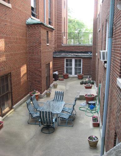The back yard: This turned out to be a wonderful quiet spot with tables and chairs where retreatants and others who came to the Mission could share a moment of fellowship over a cup of coffee or quietly enjoy a moment of peace in a neighborhood accustomed to drugs and gangs.
