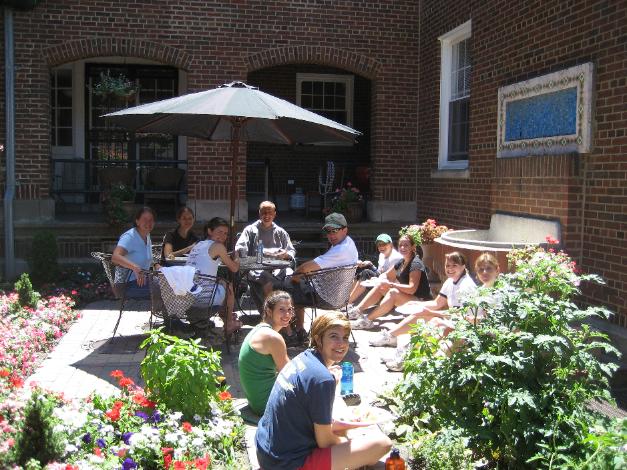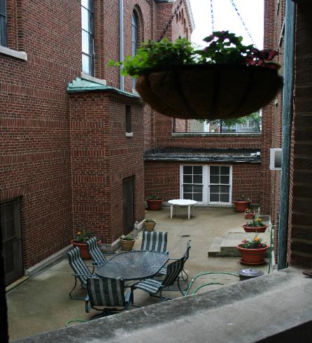 The courtyard between the church and the rectory is a nice gathering place