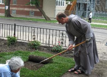 The Boy Scout Troop from Park Ridge, Illinois came to help Fr. Bob and did a fabulous job with the front yard!